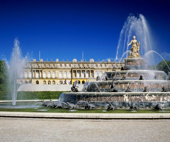 Planurile pentru grădinile castelului erau asemănătoare cu cele ale grădinilor din Versailles, însă înaintea decesului regelui numai câteva secțiuni de-a lungul axei principale, pavate cu fântâni spectaculoase, au fost terminate. În timpul verii, aceste fântâni își agită apele la fiecare 30 de minute.