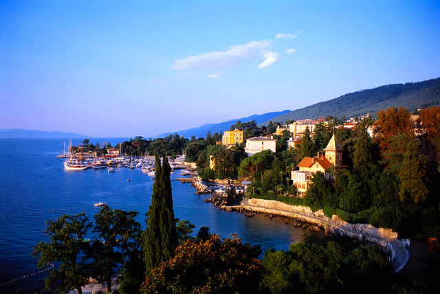 Din 1885, când a fost construită linia ţărmului, Opatija îţi păstrează atmosfera de vacanţă lipsită de griji, care îi fascinează pe europeni. Poate cel mai popular mod de a te bucura de farmecul acestui colţişor de rai este Lungomare, o pasarelă care se întinde pe 12 km de-a lungul Golfului Kvarner, de unde poţi vedea Muntele Vojak, cel mai înalt din Istria. Nu departe de aici, Vila Angiolina, o casă decorată în stilul secolului XIX, este acum o galerie înconjurată de o grădină botanică plină cu bambuşi, camelii şi importate soiuri de arbori din Asia. Vei obţine o bucăţică din cultura religioasă a Opatijei prin vizitarea bisericii Buna Vestire, construită la începutul secolului XX în stil neo-romanic, cu vitralii tradafirii şi un dom observabil din orice parte a oraşului. Unul dintre simbolurile Opatijei este nimfa cu pescăruş, realizată de sculptorului Zvonko în 1956, în locul unei statui a Madonnei. Noaptea, face senzaţie cu aura de lumină creată de reflectoarele construite în roci.