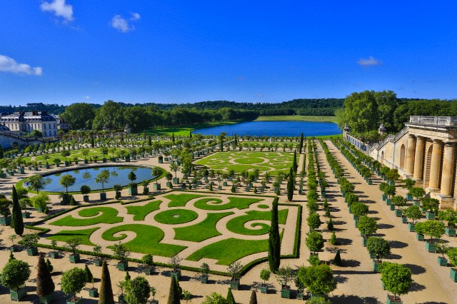 Întregul regat se întinde falnic pe aproximativ 809 hectare. Ziua te poți pierde în grădinile sale imense care cuprind aproximativ 129 de kilometri de copaci, printre care 150 de varietăți de meri și piersici, 43 de kilometri de spaliere și 50 de fântâni.