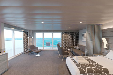 suite luxoase cu servicii de butler 24/7 și concierge dedicat restaurant privat, lounge exclusiv și piscină rezervată prioritate la îmbarcare/debarcare și acces la zona Spa Thermal Suite inclus pachete de băuturi și internet incluse