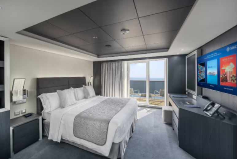 suite spațioase cu balcon și opțiuni cu jacuzzi privat piscină și solarium exclusiviste lounge și restaurante private servicii de butler 24/7 și concierge dedicat acces gratuit la Thermal Suite în MSC Aurea Spa pachete de băuturi și internet incluse