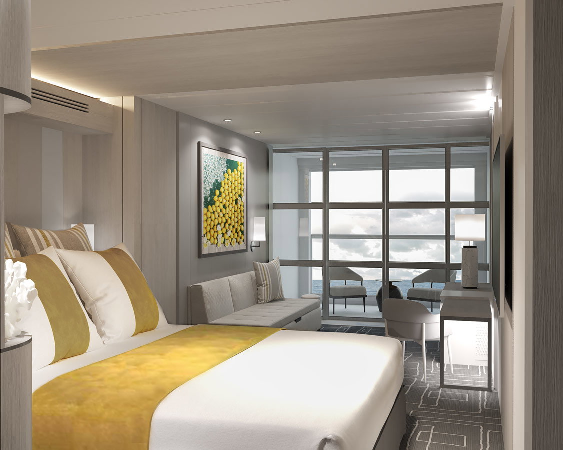 Cabinele de pe Celebrity Ascent sunt proiectate pentru confort și conectare cu marea: • Infinite Veranda – un concept inovator unde balconul devine parte integrantă a camerei, pentru priveliști panoramice; • AquaClass® & Concierge Class – cabine cu facilități extra și acces la servicii și restaurante dedicate; • The Retreat & Iconic Suites – suite spațioase cu acces exclusiv la sundeck privat, lounge și servicii premium. Fiecare categorie de cabină oferă design modern, facilități confortabile și acces rapid la facilitățile navei.