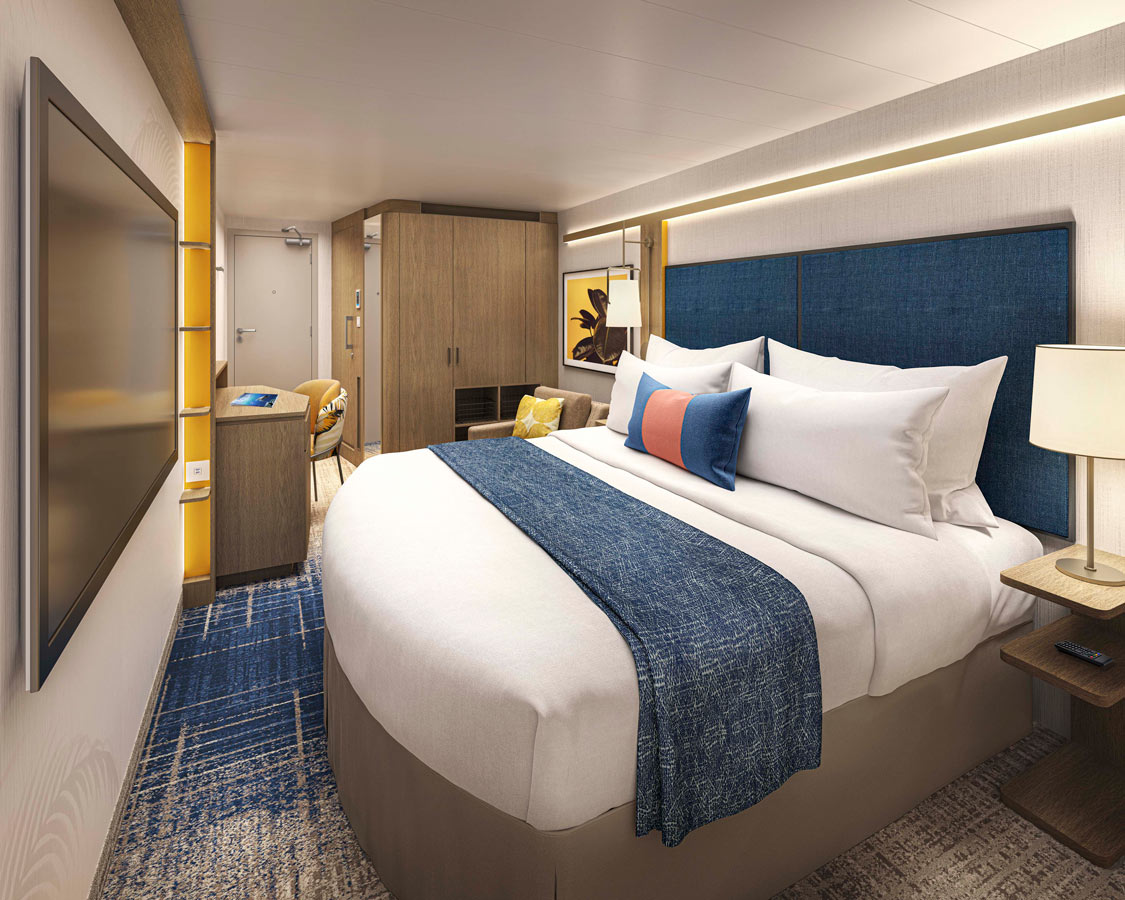 Cabinele și suitele sunt foarte variate, de la cabina interioară la suite spațioase cu vedere panoramică și balcon. Printre opțiuni se numără: • Infinite Balcony – cabine cu balcon „francez” cu geamuri panoramice. • Surfside Family Suite și Ultimate Family Townhouse – soluții moderne pentru familii, cu spații separate pentru copii și facilități tematice. • Icon Loft Suite și alte suite premium cu terase spațioase.