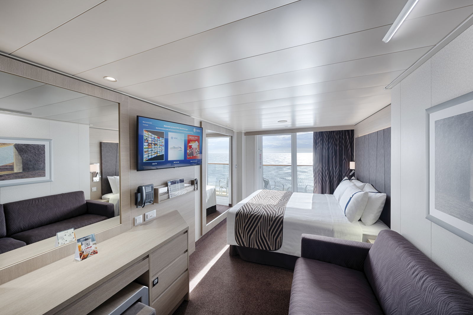 Studio Ocean View & Interior – pentru o opțiune practică și confortabilă Infinite Ocean View & Balcony – cabine cu vedere panoramică spre mare MSC Yacht Club Suites – zonă exclusivă ship‑within‑a‑ship cu beneficii premium, inclusiv: