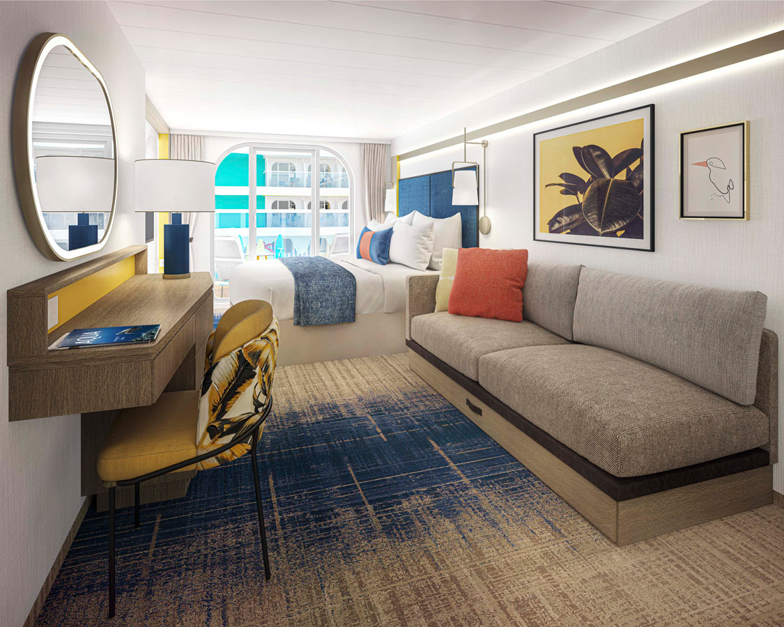 Cabinele și suitele sunt foarte variate, de la cabina interioară la suite spațioase cu vedere panoramică și balcon. Printre opțiuni se numără: • Infinite Balcony – cabine cu balcon „francez” cu geamuri panoramice. • Surfside Family Suite și Ultimate Family Townhouse – soluții moderne pentru familii, cu spații separate pentru copii și facilități tematice. • Icon Loft Suite și alte suite premium cu terase spațioase.