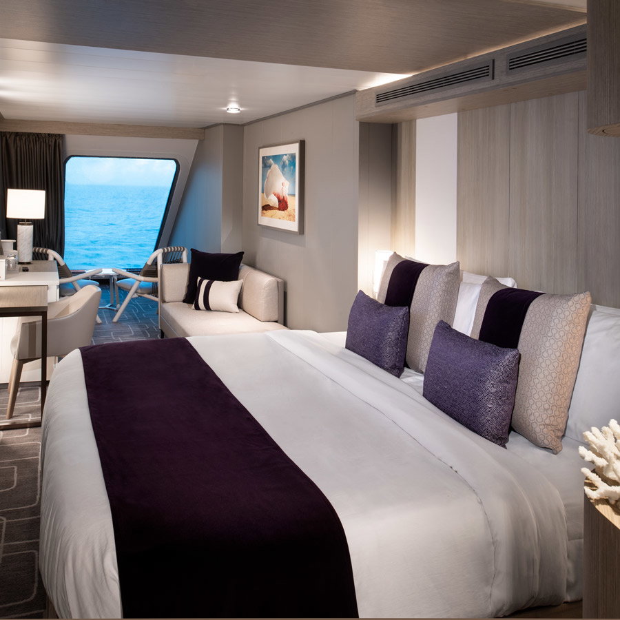 • Inside, Oceanview și Veranda: cabine moderne și bine optimizate. • Infinite Veranda: concept inovator cu balcon integrat în cameră. • Concierge & AquaClass®: beneficii suplimentare și acces la facilități exclusive. • Suites (The Retreat®): experiență ultra-premium, cu restaurant privat, lounge și servicii personalizate.