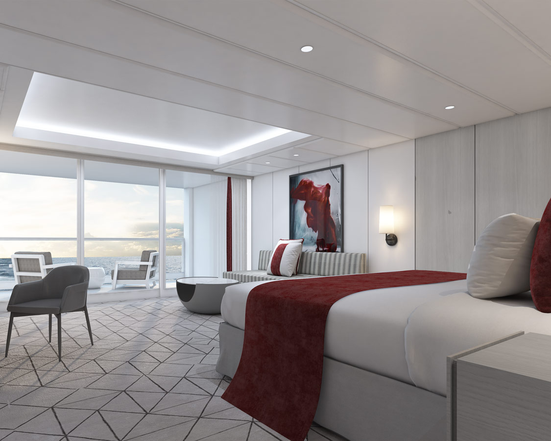 • Inside, Oceanview și Veranda: cabine moderne și bine optimizate. • Infinite Veranda: concept inovator cu balcon integrat în cameră. • Concierge & AquaClass®: beneficii suplimentare și acces la facilități exclusive. • Suites (The Retreat®): experiență ultra-premium, cu restaurant privat, lounge și servicii personalizate.