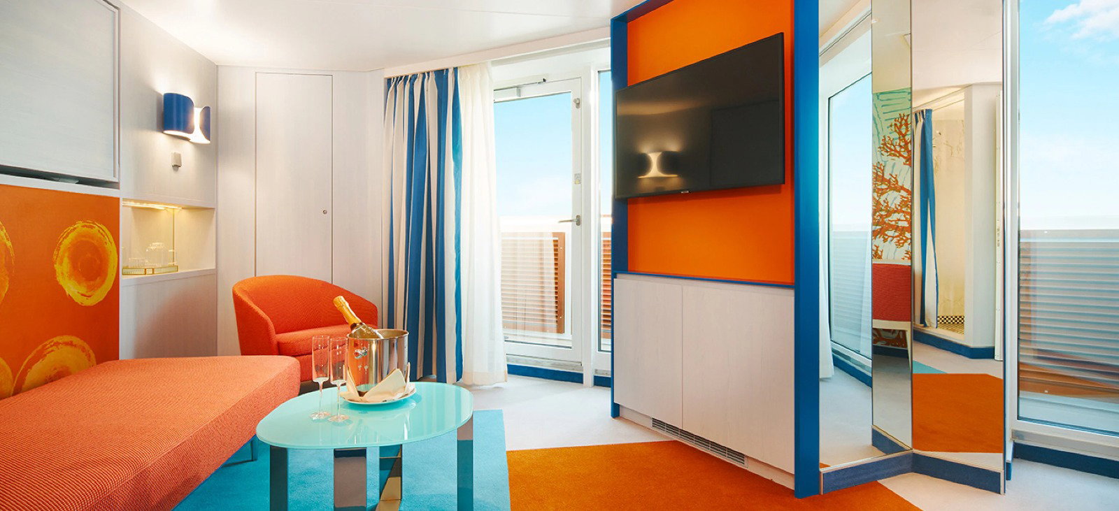 Interiorul cabinelor este inspirat din stilul italian modern, cu dormitoare confortabile, iluminare elegantă și facilități actualizate pentru confortul pasagerilor.
