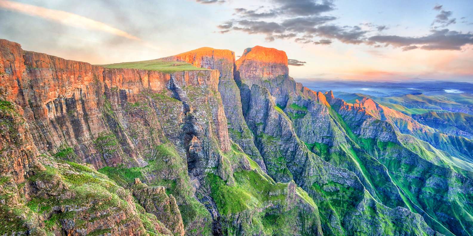 Munții Drakensberg, un sit al Patrimoniului Mondial UNESCO, sunt una dintre cele mai spectaculoase destinații naturale din Africa de Sud și oferă peisaje de o frumusețe rară. Acest lanț montan se întinde pe aproximativ 1.000 de kilometri și este cunoscut pentru vârfurile sale înzăpezite, văile adânci, râurile cristaline și vegetația luxuriantă.