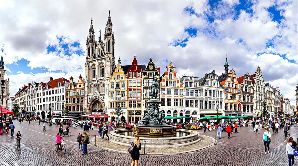 Ce poți vedea în Grote Markt: Primăria din Anvers (Stadhuis): Construită în 1565, în stil renascentist flamand cu influențe italiene. Fațada este decorată cu steaguri ale orașelor înfrățite și țărilor UE. Parte din patrimoniul UNESCO. Clădirile breslelor (Gildehuizen): Clădiri ornate, cu fațade în trepte și statui aurite în vârf. Reprezentau diferite bresle (meșteșugari, comercianți) din perioada medievală. Reconstruite fidel în secolul XIX, inspirate de originalele din secolele XVI–XVII. Fântâna Brabo Simbol al orașului, situată în mijlocul pieței. Reprntă legenda lui Silvius Brabo, soldatul roman care a înfrânt gigantul Druon Antigon. Potrivit legendei, Brabo i-a tăiat mâna gigantului și a aruncat-o în râu — de aici ar veni numele „Antwerpen” (hand werpen = „a arunca mâna”).