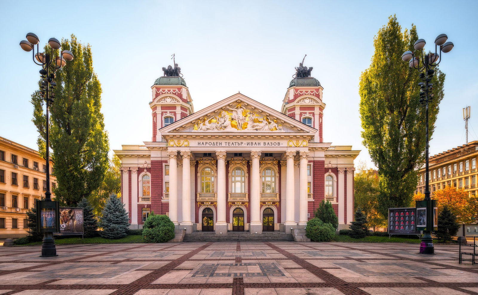 Teatrul Național „Ivan Vazov” este cea mai prestigioasă instituție teatrală din Bulgaria și un punct de reper cultural al Sofiei. Construit în 1906 în stil neoclasic, teatrul impresionează prin fațada sa elegantă, coloanele impunătoare și decorațiunile sculpturale care reflectă tradiția artistică bulgară.
