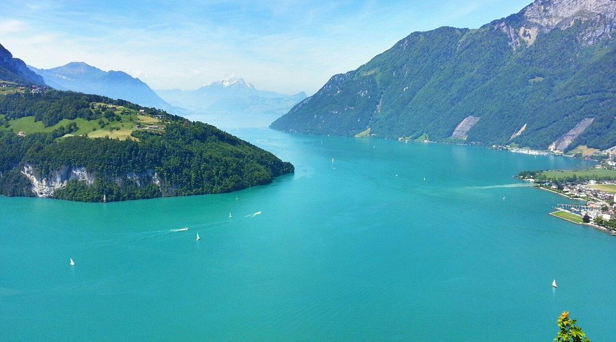 Peisaj dramatic, cu Alpii elvețieni care coboară direct în apă. Maluri împădurite, golfuri ascunse și promontorii stâncoase. Apele sunt cristaline, adesea de un albastru intens sau verde smarald. Climat plăcut vara, cu brize răcoroase de munte.