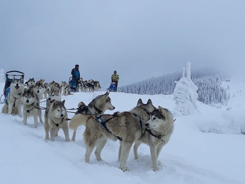 Experiența include adesea pauze pentru fotografii și oportunitatea de a interacționa cu husky-ii înainte și după tur, ceea ce face activitatea extrem de plăcută și memorabilă.