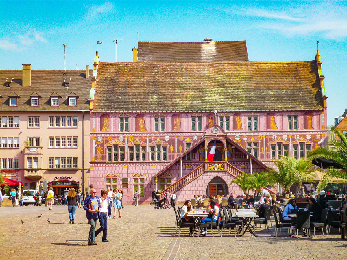 Ce să descoperi în centrul istoric: Străzi pietruite și fațade colorate: Case tradiționale alsaciene cu grinzi vizibile și detalii decorative. Piața centrală (Place de la Réunion): Inima centrului istoric, unde se află Primăria veche (Hôtel de Ville) și fațade ornamentate, perfecte pentru fotografii. Cafenele și restaurante: Terase cochete unde poți savura specialități locale alsaciene, cum ar fi tarte flambée sau vinul regional. Atmosferă medievală: Străzile înguste și clădirile istorice te fac să simți atmosfera orașului din secolele trecute. Magazine și galerii locale: Artizanat, suveniruri și produse tradiționale care reflectă cultura și meșteșugurile regionale.