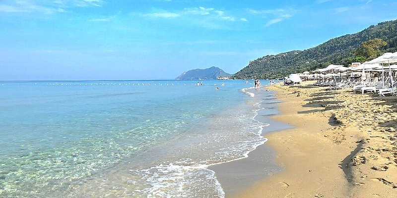 Plaja de steag albastru, Glyfada este situata la 15 km de capitala Corfu Town.
