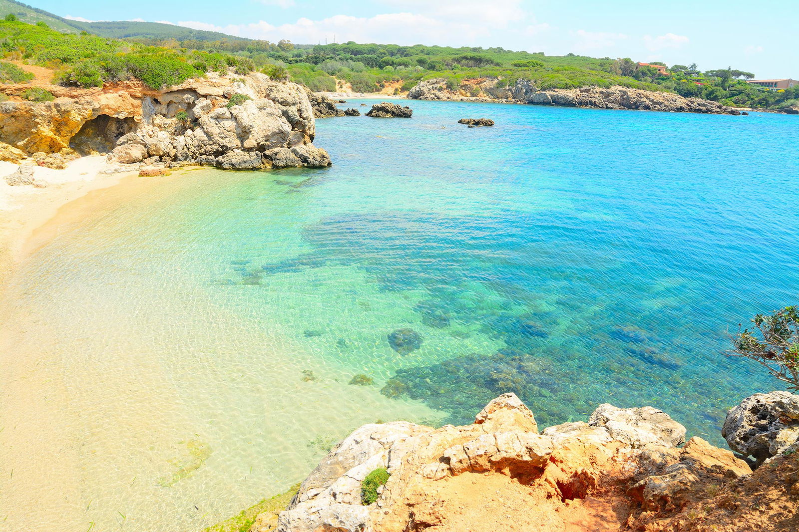 Spiaggia del Lido San Giovanni – plaja centrală, aflată la câțiva pași de oraș, ideală pentru familii și pentru cei care vor o opțiune comodă, cu șezlonguri și baruri. Spiaggia di Maria Pia – renumită pentru nisipul alb și fin, mărginită de pini umbrosi care oferă un cadru relaxant; este una dintre cele mai frumoase și populare plaje din zonă. Le Bombarde – preferată de localnici și tineri, are apă limpede, perfectă pentru înot și snorkeling, și o atmosferă mai animată. Lazzaretto – formată din mai multe golfulețe ascunse, cu apă cristalină și stânci pitorești; perfectă pentru cei care caută locuri mai intime. Mugoni – situată într-un golf protejat, cu ape liniștite și puțin adânci, ideală pentru familii și pentru cei care vor liniște.