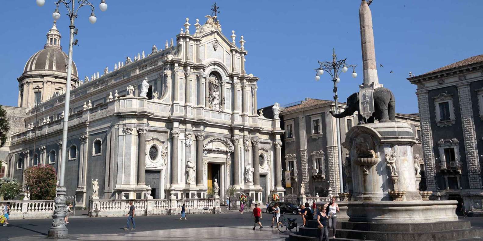 În piață vei găsi: Catedrala din Catania (Duomo di Sant’Agata) – dedicată sfintei patron al orașului, impresionantă prin fațada barocă și interiorul decorat cu opere de artă religioasă. Fontana dell’Elefante – simbolul orașului, o fântână cu un elefant negru sculptat din lavă vulcanică, situată în centrul pieței. Palazzi istorici și clădiri baroce – multe cu fațade ornamentate și detalii arhitecturale ce reflectă stilul distinctiv al orașului.