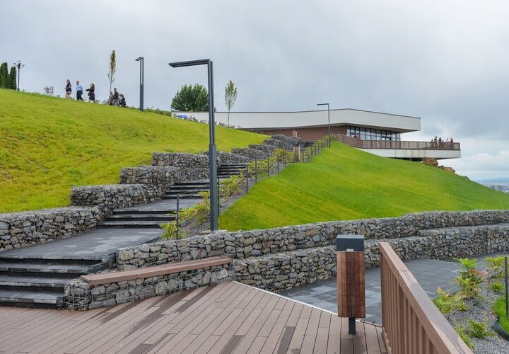 Oamenii se pot relaxa, au parte de un amfiteatru in aer liber, o cafenea, pergola, bancute si cinci puncte de belvedere.