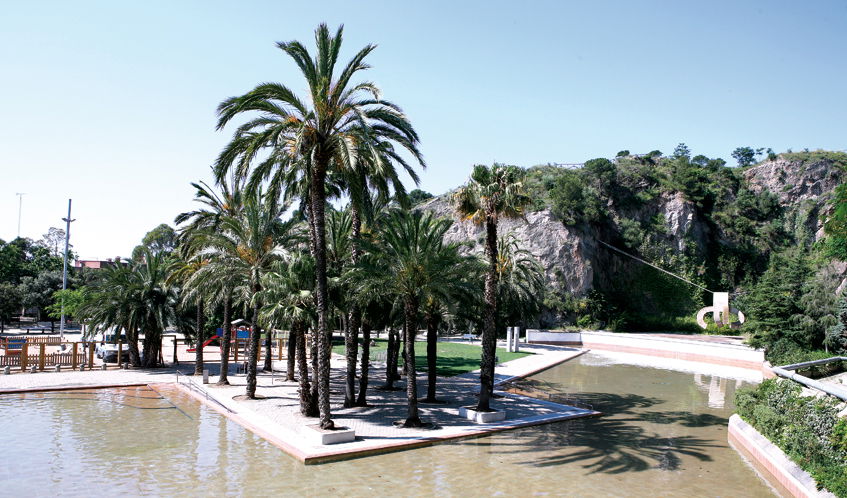 Parcul a fost creat de arhitectul Martínez Lapeña și designerul Elías Torres, care au transformat această fostă zonă industrială într-un loc verde accesibil publicului. Designul parcului include elemente de peisagistică modernă și arte plastice, fiind un loc de recreere și, totodată, o lucrare de artă urbană. Una dintre atracțiile principale ale parcului este piscina publică. Aceasta este o piscină mare, în aer liber, care atrage multă lume în zilele călduroase de vară. Este un loc popular pentru a te răcori și a te bucura de soare.