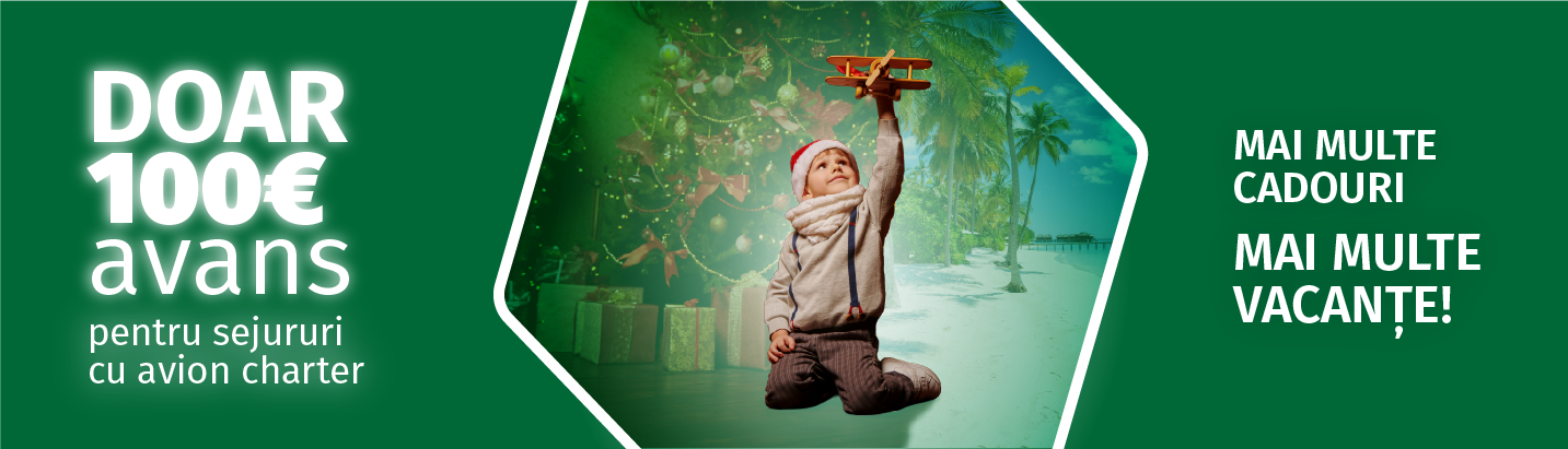 Iar cand vine vorba de locatii mai indepartate, operam zboruri charter pentru ca tu sa beneficiezi de reduceri semnificative ale tarifelor de transport aerian.