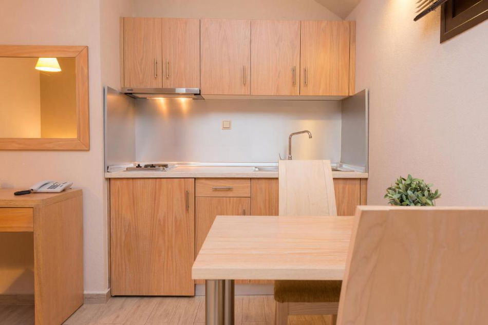 In ceea ce priveste mesele, apartamentele dispun de o bucatarie complet utilata, permitandu-va sa savurati preparate gatite acasa. De asemenea, in zona exista numeroase restaurante si taverne care ofera specialitati locale, astfel incat sa puteti experimenta gastronomia traditionala greceasca.