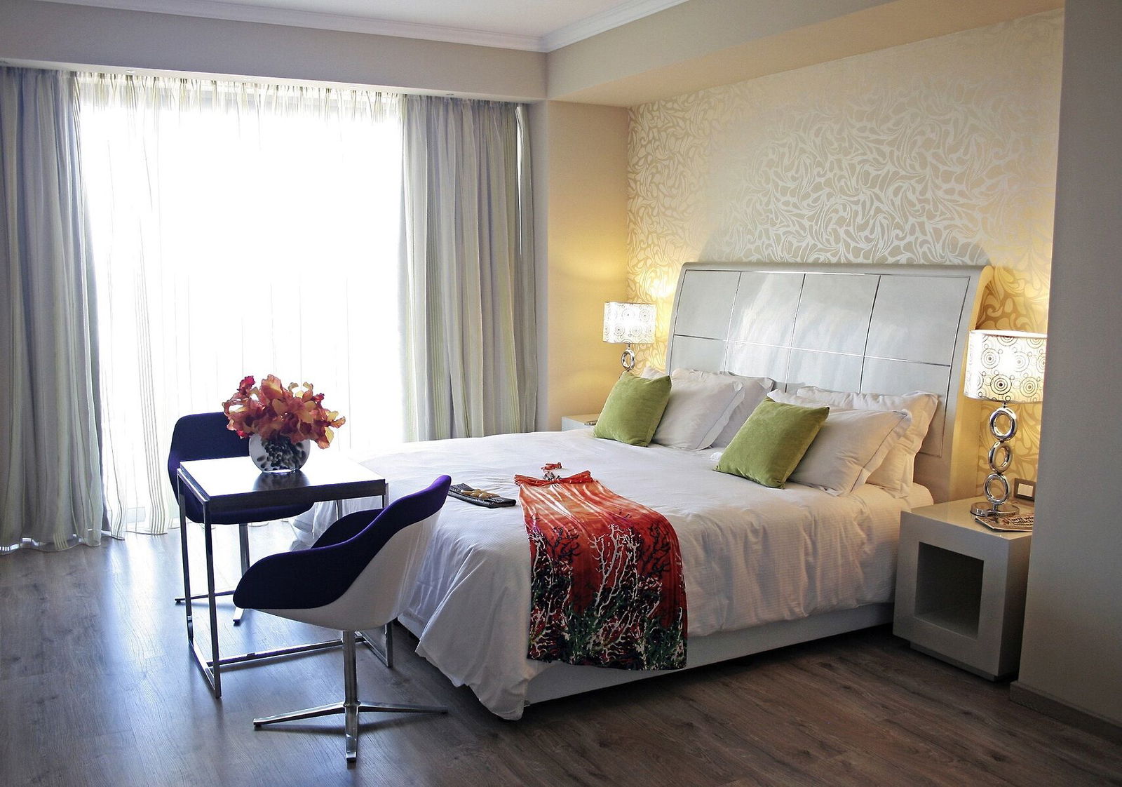 Camerele hotelului sunt variate, incluzand camere deluxe si executive cu vedere la mare sau cu piscina privata, suite familiale deluxe, camere superioare si junior suite. Fiecare camera este dotata cu aer conditionat, telefon direct, minibar, TV prin satelit, internet wireless gratuit si facilitati pentru prepararea cafelei si ceaiului. Baia este echipata cu cada sau dus, halat si papuci, uscator de par si seif, iar multe camere dispun de balcon cu vedere panoramica.
