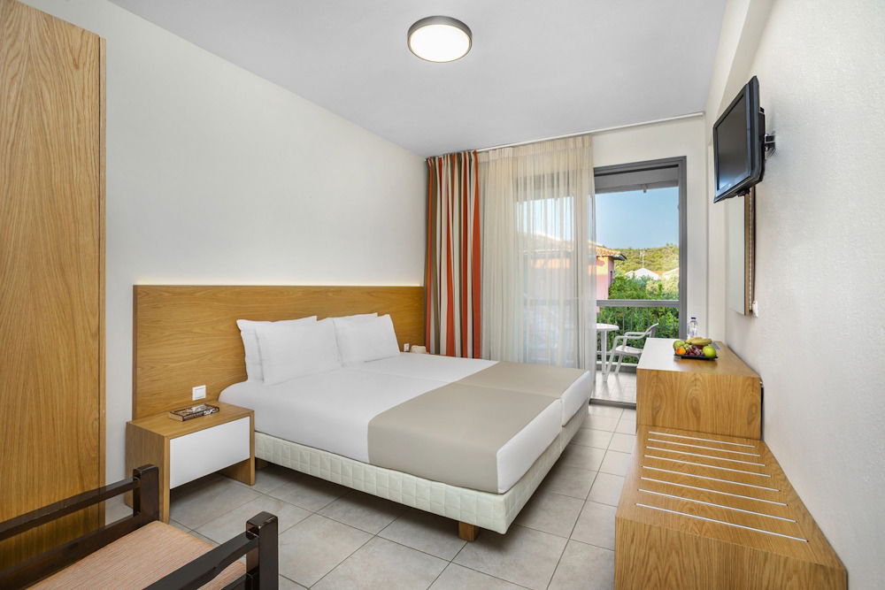 Camerele hotelului sunt amenajate cu atentie, oferind un confort deosebit. Fiecare camera este dotata cu facilitati moderne, inclusiv aer conditionat, TV prin satelit si minibar, asigurand astfel un mediu placut pentru odihna. Balcoanele private ofera vederi spectaculoase asupra imprejurimilor, permitand oaspetilor sa se bucure de frumusetea naturala a zonei. Hanioti Village Wellness & Spa Resort se straduieste sa ofere un refugiu confortabil, unde fiecare detaliu este gandit pentru a raspunde nevoilor vizitatorilor.