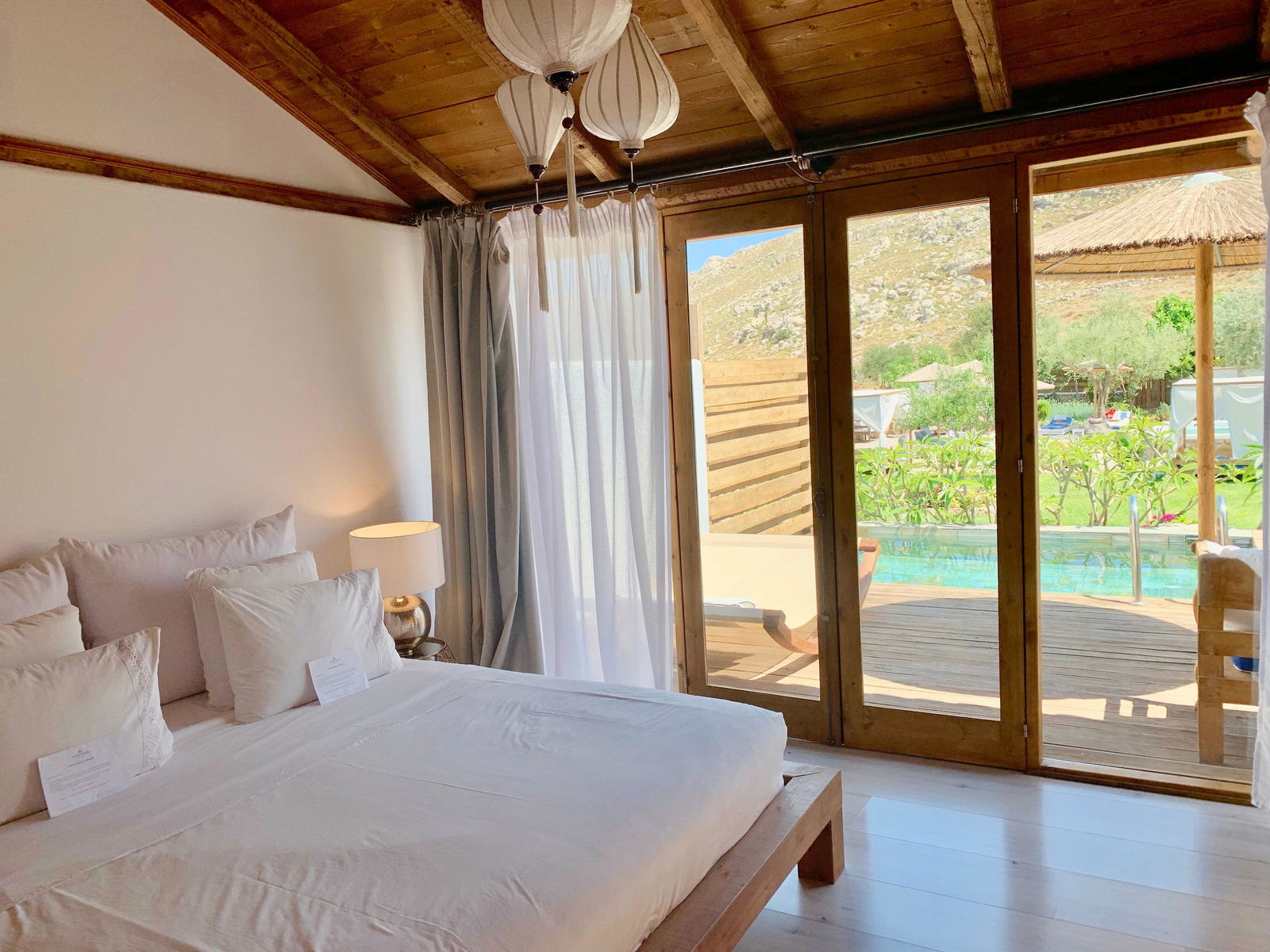 Camerele hotelului sunt dotate cu aer conditionat si sistem de incalzire, asigurand o atmosfera placuta. Fiecare camera dispune de un pat "King size", seif, minibar, aparat pentru cafea/ceai, telefon, televizor cu ecran plat si Wi-Fi. Clientii se pot bucura de vederea la mare de la balcon sau terasa, iar baile sunt echipate cu uscator de par, oglinda de machiaj si halate de baie. Papucii de casa si setul de calcat adauga un plus de confort.
