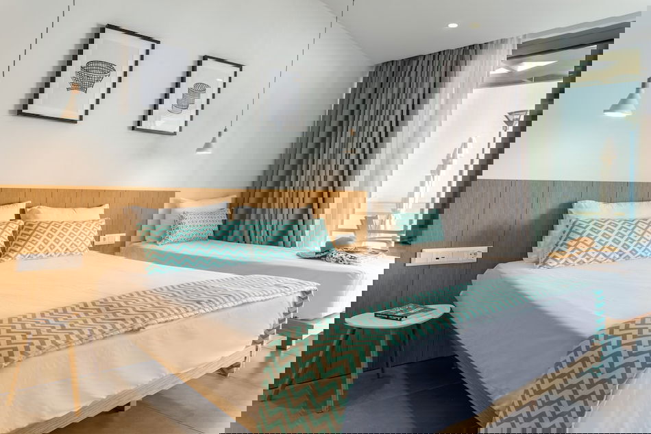Camerele sunt dotate cu aer conditionat si ofera chicinete complet utilate, inclusiv frigidere si plite. Fiecare camera are un balcon sau o terasa mobilata, unde oaspetii se pot bucura de aerul proaspat al marii. Televizoarele cu ecran plat sunt disponibile pentru divertismentul oaspetilor, iar facilitatile suplimentare includ cuptoare cu microunde si kettle electrice. Serviciul de curatenie este asigurat zilnic, garantand un mediu curat si confortabil.