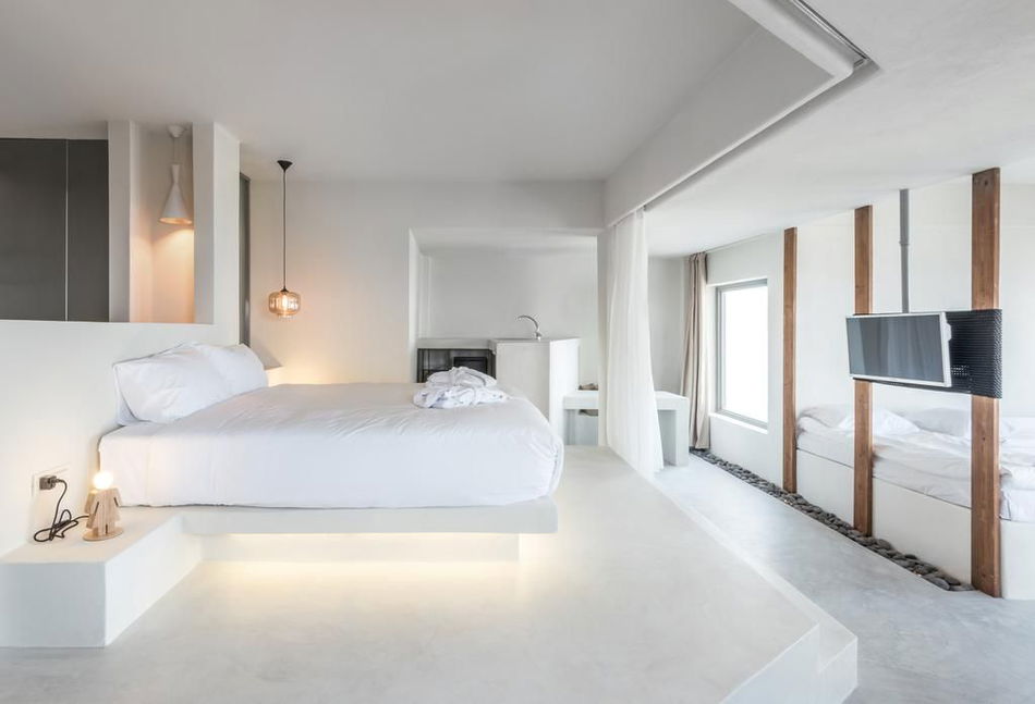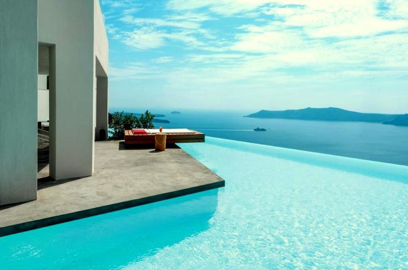 Cele 16 suite sunt fiecare o abordare diferita a ideii de "viata", avand un design care combina alb si gri, imbinand structurile cicladice cu stancile vulcanice ale insulei. Fiecare suita dispune de terase spatioase cu piscine-Jacuzzi private, oferind o priveliste magnifica asupra apusului si a marii, in lux si intimitate totala. Aceasta diversitate de suite asigura o experienta personalizata pentru fiecare oaspete.