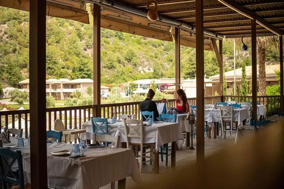 Pentru mesele zilnice, hotelul ofera o varietate de optiuni culinare, inclusiv preparate din bucataria locala si internationala la restaurantul Olympus. Oaspetii pot opta pentru serviciul de room service disponibil 24 de ore sau pot savura o bautura la barul de pe plaja sau la barul de langa piscina. Un mic dejun tip bufet este servit zilnic intre orele 7:30 si 10:30, asigurand un inceput perfect pentru zi.