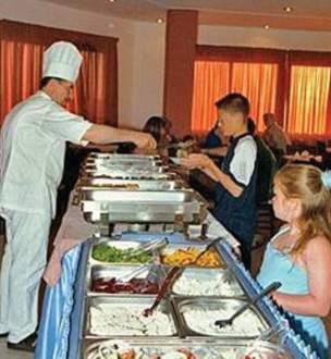 In ceea ce priveste mesele, hotelul ofera un restaurant, o sala de mese si un bar, cu optiunea de regim all inclusive. Oaspetii pot savura micul dejun, pranzul si cina, precum si gustari pe parcursul zilei. O selectie variata de bauturi alcoolice si nealcoolice este disponibila pentru a completa experienta culinara. Hotelul accepta carduri de credit Visa si MasterCard.