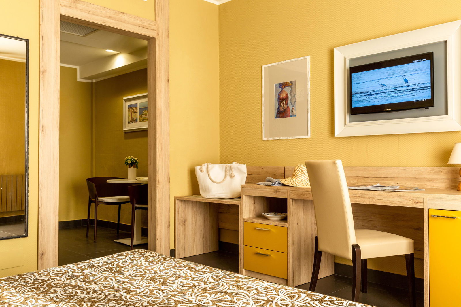 Camerele hotelului sunt dotate cu aer conditionat, majoritatea avand balcoane care ofera un spatiu suplimentar pentru relaxare. Fiecare camera este echipata cu un pat dublu confortabil, un minifrigider, un telefon cu apelare directa, un televizor si WiFi, asigurand un confort optim. Baile sunt dotate cu dus si cada, uscator de par si halate de baie, oferind un mediu placut si relaxant.