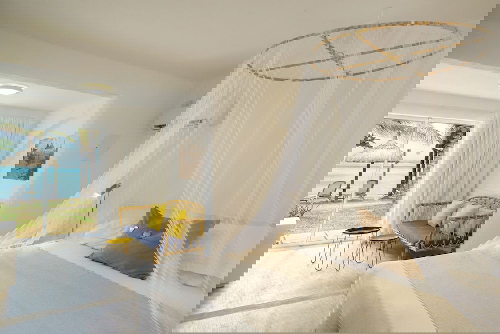 Camerele sunt dotate cu bucatarie, baie privata si aer conditionat, asigurand un confort optim. Fiecare camera ofera vedere spre mare de pe balcon sau terasa, iar facilitatile includ un seif, minibar, birou, frigider si aparat pentru cafea/ceai. Clientii se pot bucura de divertisment prin televizor si Wi-Fi gratuit. Baia este echipata cu dus, uscator de par si oglinda de machiaj, iar hotelul ofera camere de nefumatori si adaptate pentru scaun cu rotile.