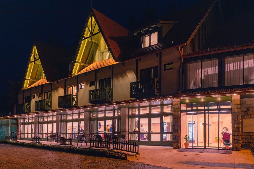 În complexul de clădiri, inclusiv clădirea principală de-a lungul drumului principal, Casa vânătorească și casa nou construită, se pot găzdui un total de 152 de persoane în același timp. Parcarea pazita este disponibila in zona complexului pentru oaspetii , care pot alege dintre 6 camere premium cu paturi matrimoniale, 52 camere standard cu paturi lipite, si 3 apartamente. Prețurile camerelor includ întotdeauna micul dejun, cina și acces nelimitat la spa .