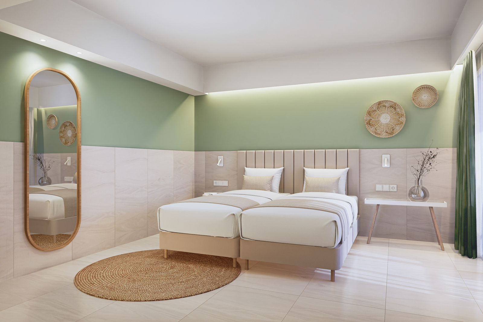 Camerele hotelului sunt dotate cu aer conditionat si ofera facilitati moderne pentru confortul oaspetilor. Acestea includ seif (contra cost), TV prin satelit si optiuni de cazare pentru familii, inclusiv paturi pentru copii si scaune inalte. Hotelul este accesibil persoanelor cu dizabilitati, avand camere si bai adaptate. Oaspetii pot explora zona inconjuratoare cu ajutorul serviciului de inchiriere de masini si motociclete disponibil in apropiere.