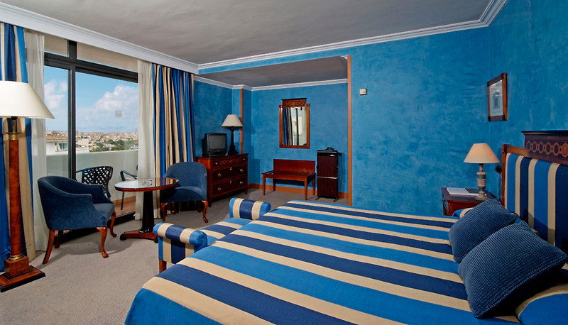 Camerele hotelului sunt dotate cu aer conditionat, sistem de incalzire, si majoritatea ofera vedere la mare de pe balcon sau terasa. Fiecare camera dispune de un pat dublu sau "King size", minibar, seif, birou, si facilitati moderne precum televizor cu canale prin satelit si Wi-Fi gratuit. Baile sunt echipate cu dus, cada, bideu, uscator de par si articole de cosmetica. Hotelul ofera si camere adaptate pentru persoanele cu mobilitate redusa, asigurand confortul tuturor oaspetilor.
