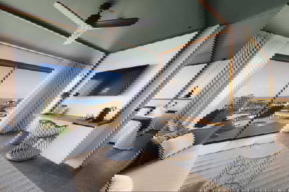 Camerele hotelului sunt dotate cu facilitati de ultima generatie, inclusiv aer conditionat, Wi-Fi gratuit, televizoare cu ecran plat si bai private luxuriante. Fiecare suita ofera o priveliste spectaculoasa asupra gradinilor sau a marii, creand un ambient relaxant si placut. Oaspetii se pot bucura de un decor modern si rafinat, care completeaza perfect atmosfera de relaxare si confort.