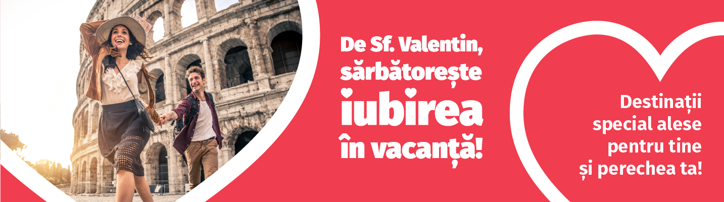 Alegeti o vacanta de Valentine's Day si transformati aceasta sarbatoare intr-o amintire magica! Descoperiti ofertele noastre speciale si lasati-va purtati de romantism in cele mai frumoase colturi ale Europei.